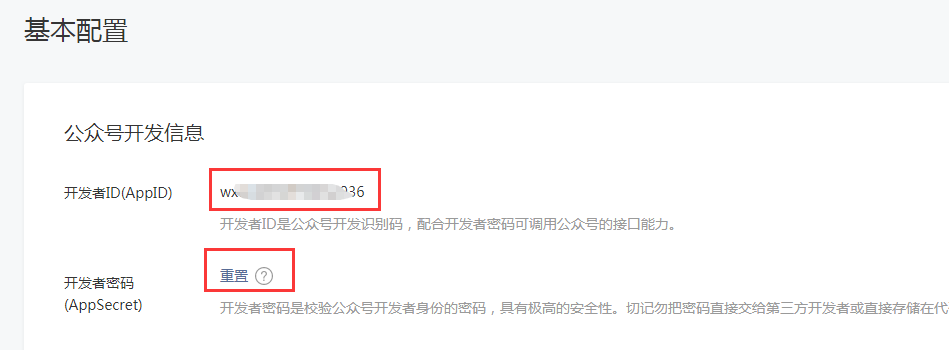 5、入驻完成后即可找到AppID、AppSecret、商户号、Key,AppID和AppSecret,登录微信公众平台,基本配置中可查看AppID和AppSecret。其中AppSecret重置后可查看到