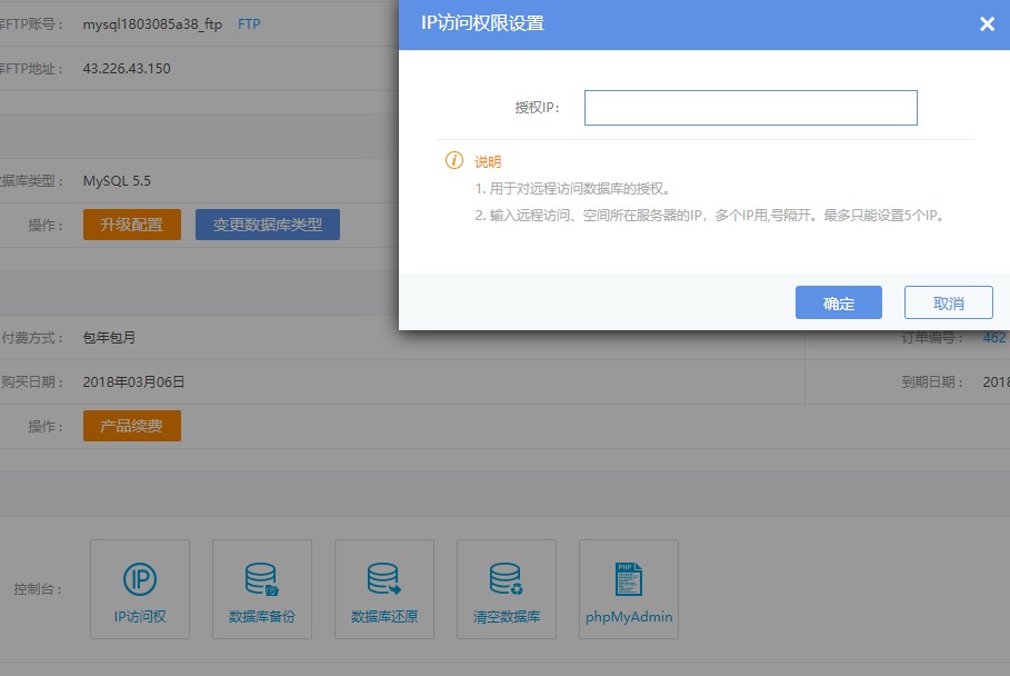 在 数据库主机管理 控制台 中 点击 ip访问权