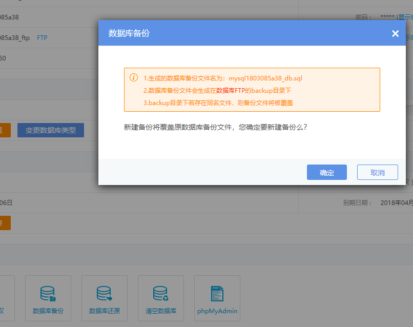 数据库备份文件会生成在数据库FTP的 backup 目录下。