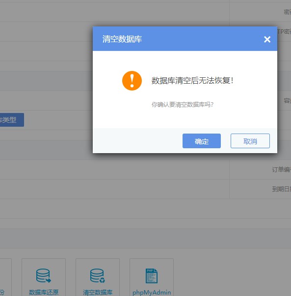 在 数据库主机管理 控制台 中 点击 清空数据库