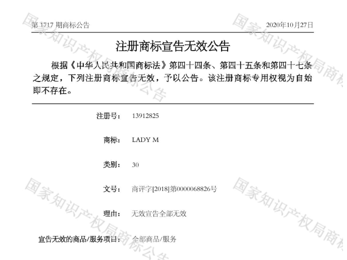 围绕第13912825号“LADY M”商标(下称诉争商标)引发的商标权无效宣告请求行政纠纷一案,北京市高级人民法院日前作出的终审判决给出了答案。