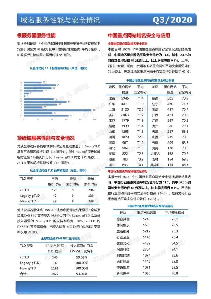 1、对从全球访问各顶级域解析时延调查结果显示:NewgTLD具有平均最短解析时延(38毫秒),其中42.3%的顶级域解析时延在20毫秒及以下。